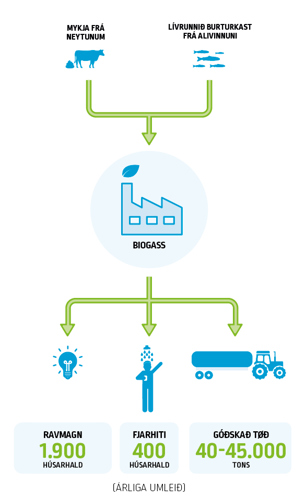 Biogassverkið Förka hevur møguleika at framleiða el, sum svarar til nýtsluna hjá 1.900 húsarhaldum, harafturat fjarhita svarandi til 400 húsarhald. Sostatt kann verkið tilsamans spara uml. 11.000 tons av CO2 útláti árliga. Samstundis framleiðir verkið uml. 40-45.000 tons av tøðum, sum bóndurnir kunnu fáa aftur.